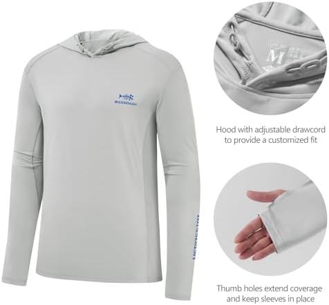 BASSDASH Men\u2019s UPF 50+ Drawstring Fishing Hoodie Shirts UV Sun Protection Long Sleeve Outdoor Hiking Hooded T-Shirts FS33M