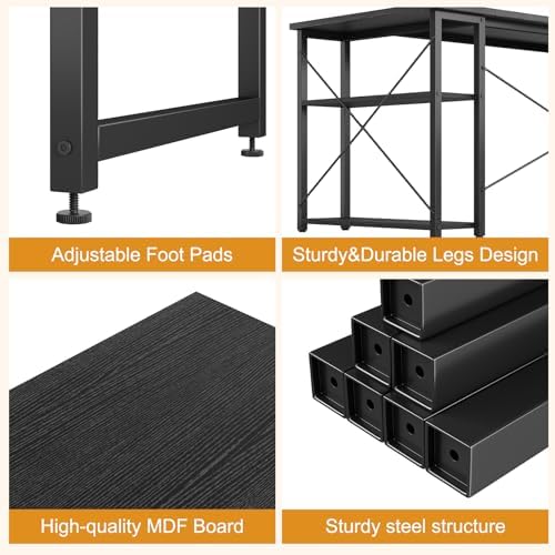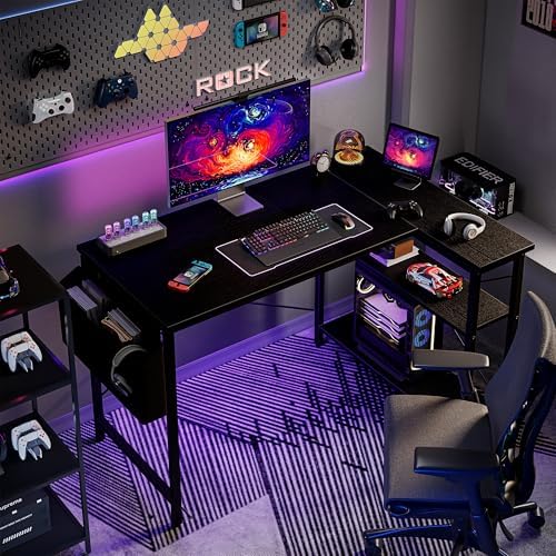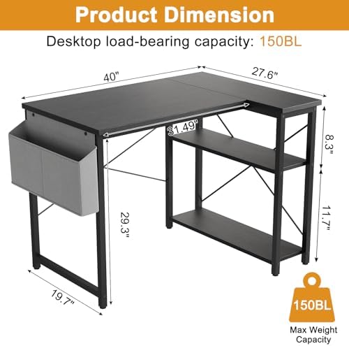 Grandder L Shaped Computer Desk with Reversible Shelves, 40 Inch Small Corner Desk with Storage Bag, Gaming Desk Computer Table Study Writing Table for Home Office Bedroom Small Space, Black