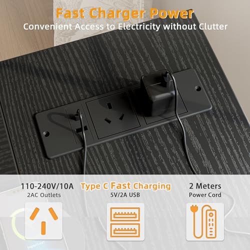 TIQLAB Small Computer Desk with Power Outlets, 40 Inch L Shaped Desk with Reversible Shelves, Gaming Desk Corner Desk Study Writing Table for Home Office Bedroom Living Room, Black