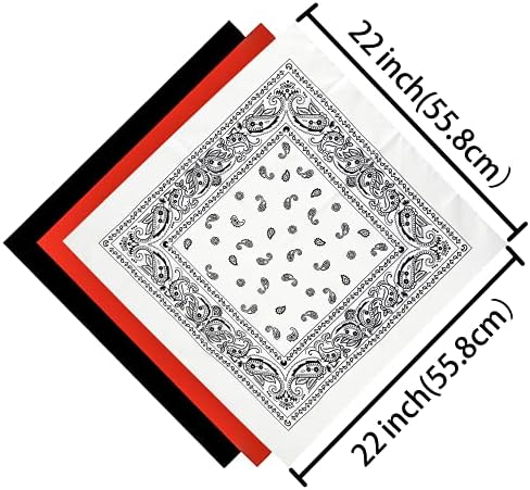 HankieWorld Bandanas 3 pack 6 pack 12 pack 22 inch Cotton Paisley Kerchiefs for Men and Women