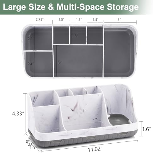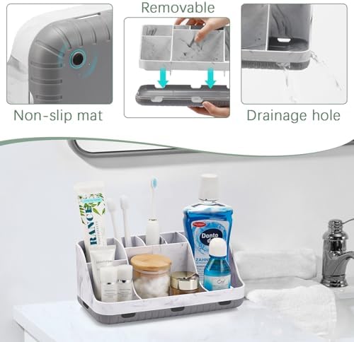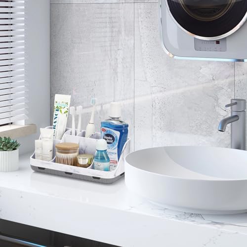 GFWARE Marble Bathroom Countertop Organizer - Detachable 7 Slots Kids Electric Toothbrush and Toothpaste Holde Drainage for Bathroom Accessories Organization Counter Vanity Storage, Grey