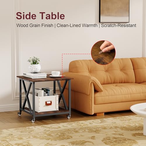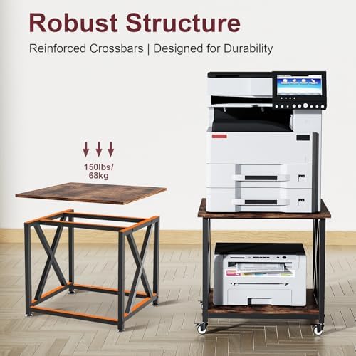 Vokumba 23.6 Inches Printer Table & Wooden Copier Stand with Storage for Home Office, Rolling Printer cart with Industrial Wheels for Home\/Business, Rustic Brown
