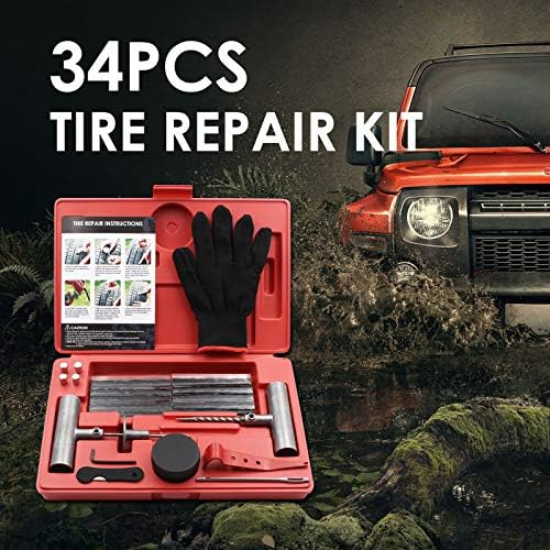 Handfly Tire Repair Kit, 34pcs Heavy Duty Plug Kit, Universal Repair Tool to Fix Punctures and Plug Flats Tire Patch for Car, Motorcycle, Truck, Tractor, Trailer, ARB, ATV, RV, SUV