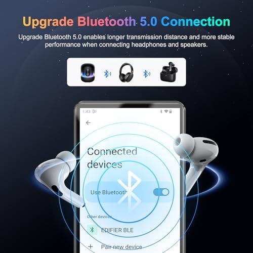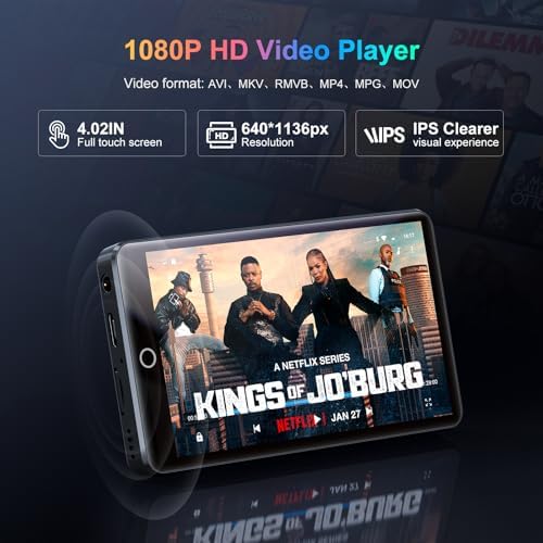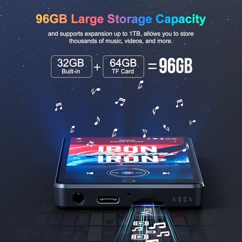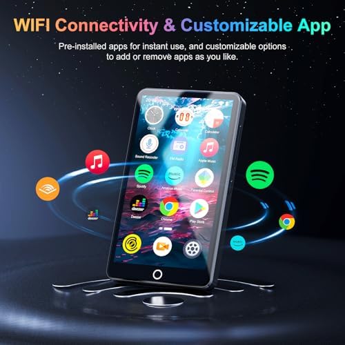 96GB MP3 Player with Bluetooth and WiFi, Portable 4.02" IPS Touchscreen Music Player with Spotify, Audible, Amazon Music, Deezer, Android Mp4 Mp3 Player with Speaker, FM Radio, MP3 Player for Kids