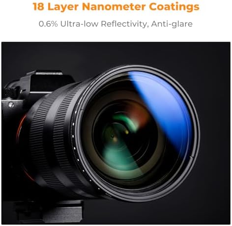 K&F Concept 82mm Variable ND2-2000 (1-11 Stops) ND Camera Lens Filter-18 Multi-Coated Adjustable Neutral Density Filter with 3 Vacuum Cleaning Cloths (K-Series)