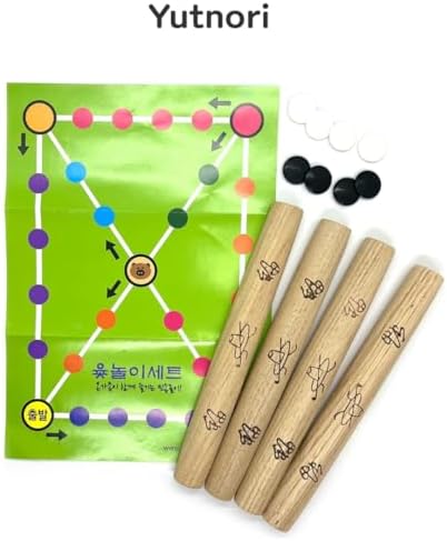 Korean Traditional Board Match Variety Set Yutnori (Yunnori 윷놀이) \/ Gonggi (공기) \/ Jaegi (제기) Folk Match for Family, Party, New Year