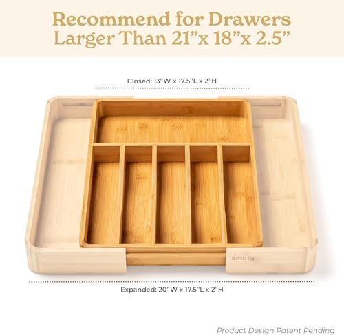 SMIRLY Silver Drawer Storage Box \\ u2013 Bamboo Kitchen Drawer Storage Box, Adjustable Tableware Rack and Tray, Drawer Divides Tableware and Kitchen Utensils