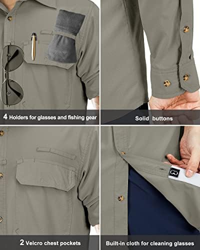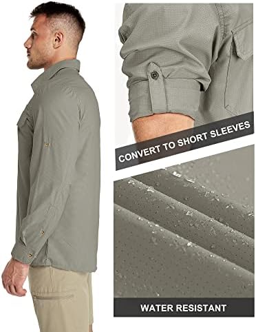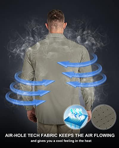 33,000ft Men's Long Sleeve Sun Protection Shirt UPF 50+ UV Quick Dry Cooling Fishing Shirts for Travel Safari Camping Hiking