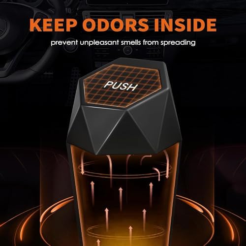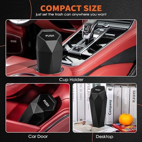 HOTOR Car Trash Can with Lid - 1 Pack, Car Accessories for Interior, Leakproof Vehicle Garbage Can with 15 Attached Trash Bags, Multipurpose Organizers and Storage for Home, Office, Black