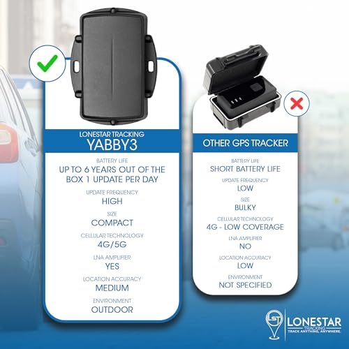 LoneStar Tracking Hidden GPS Tracker Device Yabby3 \u2013 4G\/5G Weatherproof Car, Trailer, Vehicle & Asset Tracking, Anti-Theft Satellite Tracking, Real-Time Location & Security(Low Cost Subs