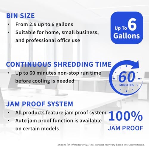 BONSAII Customizable Shredder Up to 110-Sheet Auto Feed, 60-Min Continuous Run Time, 6-Gallon Bin Optional Handle & Wheels Shreds Paper, Mail, CDs, Staples, Clips Multiple Colors Available