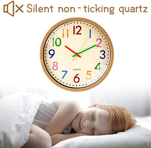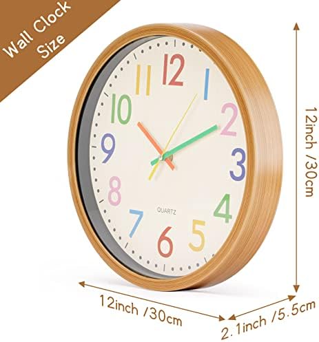 UOIXPUHUO 12 Inch Silent Kid Wall Clock Non-Ticking Clock for Kids Battery Operated Easy to Read 3D Numerals Classroom Clock for Nursery Classroom Office Living Room Bedroom Playroom Decor