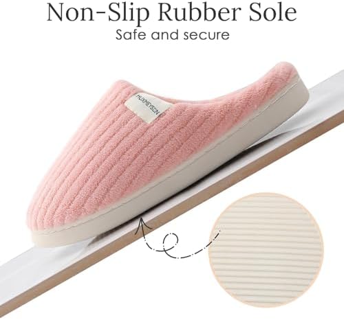 HUXMEYSON Slippers for Women, Warm Memory Foam Comfy House Slippers with Anti-Skid Rubber Sole for Indoor and Outdoor