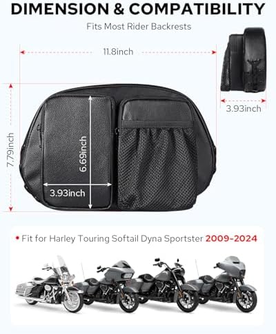 Benlari Rider Backrest Bag, Driver Backrest Organizer Bag, Motorcycle Backrest Storage Bag Kit Fit for Harley Touring CVO Street Glide Road Glide Limited Sportster Tri Glide Dyna Softail