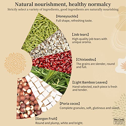 Hee Creek Red Bean Coix Seed Poria Tea Bags 450g(5g*90 bags) Chinese Herbal Tea for Dampness Clearing, Jobs Tears, Poria Cocos, Gorgon, Adzuki Bean, Honeysuckle, Light Bamboo Leaf Red bean coix seed