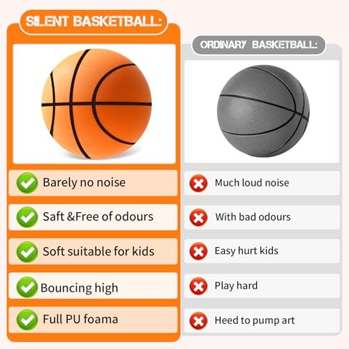 kuchisity 2 Pcs Silent Basketball Size 7 (9.4 Inch), 2025 New Foam-Basketball Indoor Dribble Dream Airless Grooved Ball for Quiet Dribbling and Indoor Training Soundless Basketballs