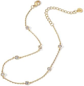 PAVOI 14K Gold Plated Charm Link Chain Anklets for Women Dainty Cubic Zirconia Boho Dot Evil Eye Star Station Solitaire Pearl Beaded Festival Adjustable Gold Anklets