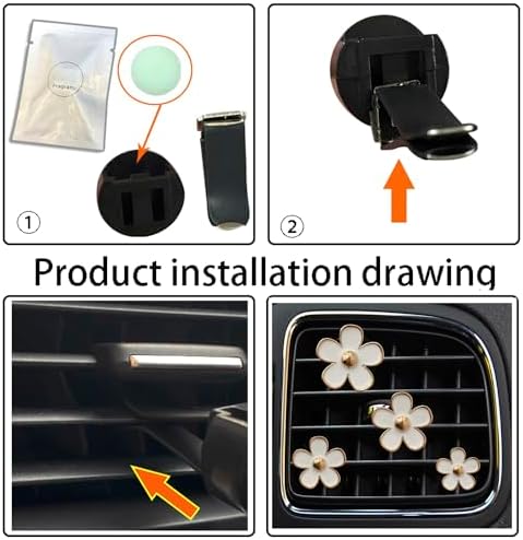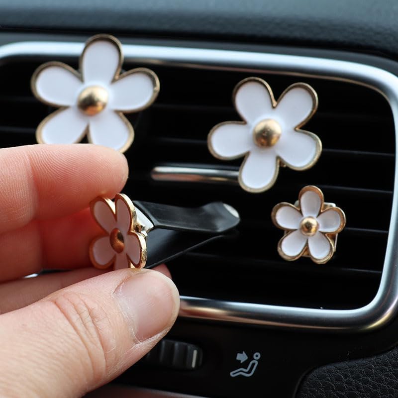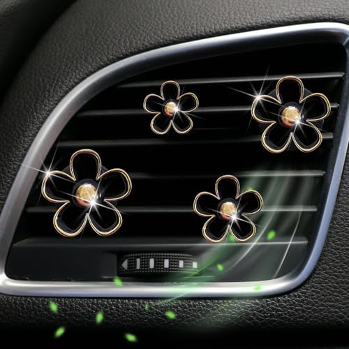 4 Pieces Daisy Flower Air Vent Clip Car Air Freshener Charm Colorful Car Interior Accessories for Girls Women(Black)