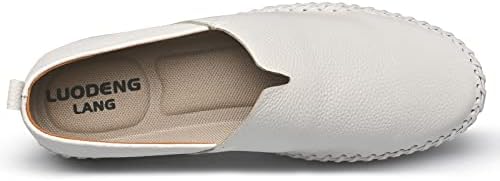 LUODENGLANG Men's Genuine Leather Loafer Shoes Slip On Soft Breathable Handmade Stitching Fashion Casual Shoes Lightweight Driving Dress Shoe