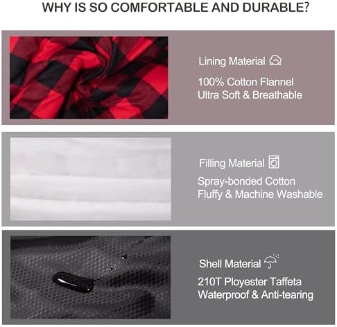 HiZYNICE 0 degree sleeping bag made of 100% pure cotton flannel XXL, adult size extended, cold weather, winter camping at zero degree, free compression bag