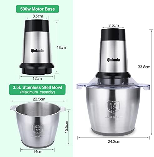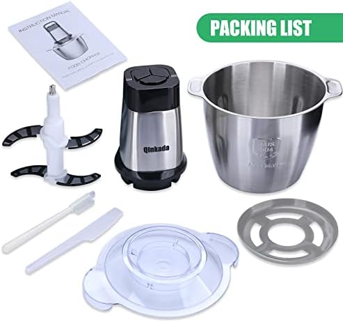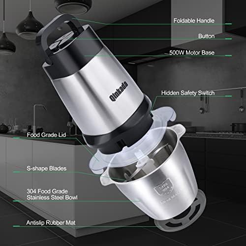 Qinkada Food Processor, 500W Powerful Meat Grinder, 14Cup Stainless Steel Bowl, 3 Speed Modes 4 Bi-Level Blades for Onion, Meat, Nuts, Fruit, Garlic, Vegetable, Baby Food