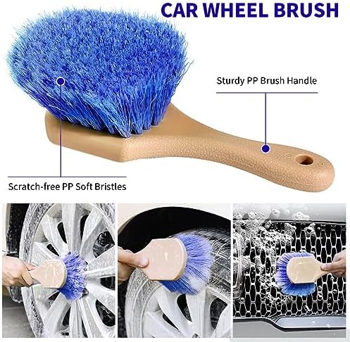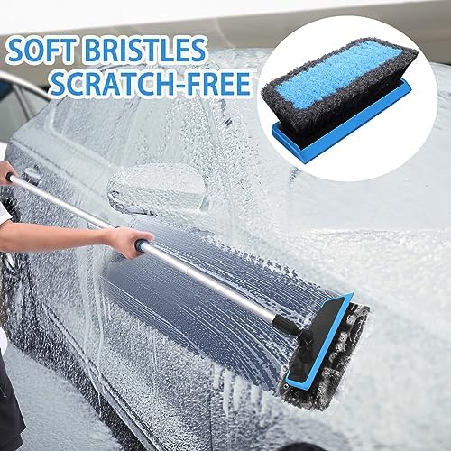 Wontolf 62'' Car Wash Brush with Long Handle, Scratch-Free Soft Bristles Sturdy Car Wash Mop Kit, Complete Car Cleaning Brush Kit Wash Mitt Towel Windshield Squeegee Wheel Tire Brush for Car T