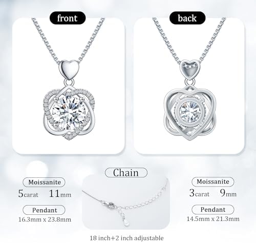 Fullove InfinityLove Heart Necklaces for Women, 5-3 Carats Moissanite, Sterling Silver Pendant Jewelry, Anniversary Birthday Gifts for Wife, Girlfriend, Daughter, Mom