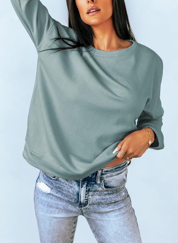 Dokotoo Women's Casual Crew Neck Sweatshirt Loose Soft Long Sleeve Pullover Tops