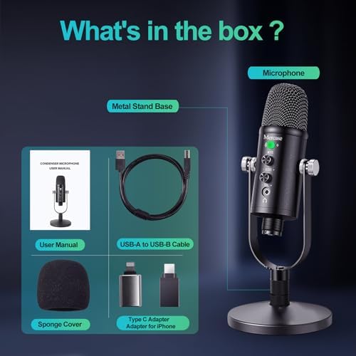 Mercase USB Condenser Microphone for PC, Mac, Phones, PS4\/PS5 \u2013 Plug & Play Studio Mic with Mute Button & Noise Reduction \u2013 for Recording, Streaming, Podcasting, Gaming, Zoom, TikTo