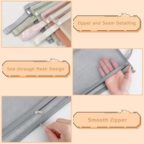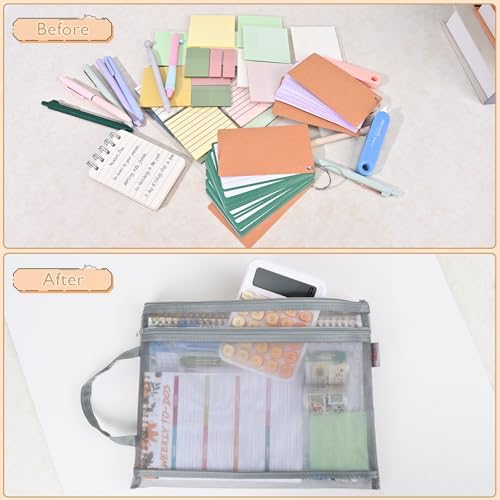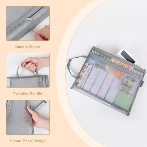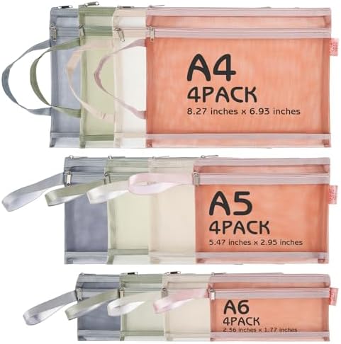 Valtiner 12-Pack Mesh Zipper Pouch Bags with Handles, Nylon Document Bag Double-Layer See Through, File Storage Pouches for Office School Supplies (4Pcs A4 & 4Pcs A5 & 4Pcs A6)