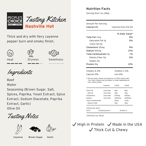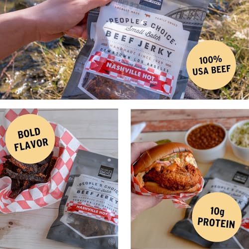 People's Choice Beef Jerky - Tasting Kitchen - Nashville Hot - Pounder of Super Spicy Jerky - Compare to World's Spiciest Heat of Carolina Reaper, Scorpion, Ghost Pepper - 1 Pound, 16 oz - 1 B