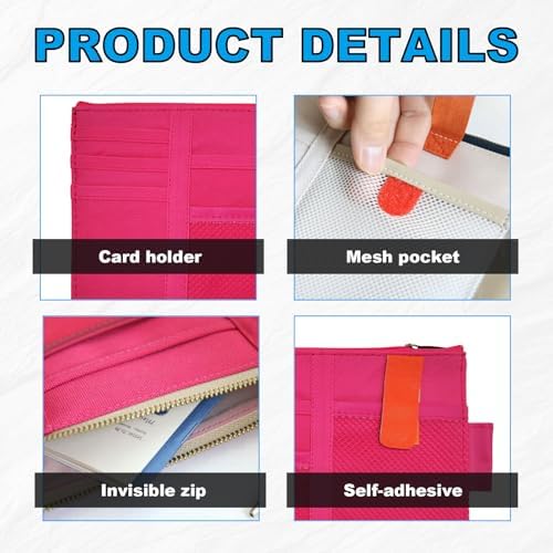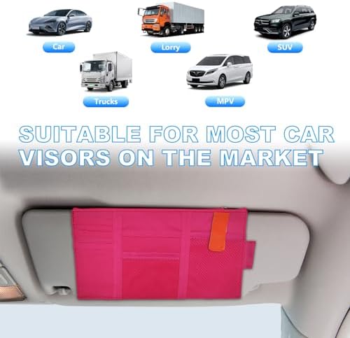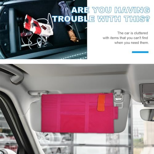 Suvnie Car Sun Visor Organizer, Auto Interior Visor Storage Pouch Holder with Zipper, Multi-Pocket Net Personal Belonging Organizer, Universal Car Accessory for Cards, Documents (Rose Red)