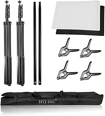 HYJ-INC Photo Background Support System with 8.5 x 10ft Backdrop Stand Kit, 100% Cotton Muslin Backdrop (White Black),Clamp, Carry Bag for Photography Video Studio