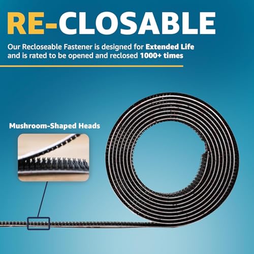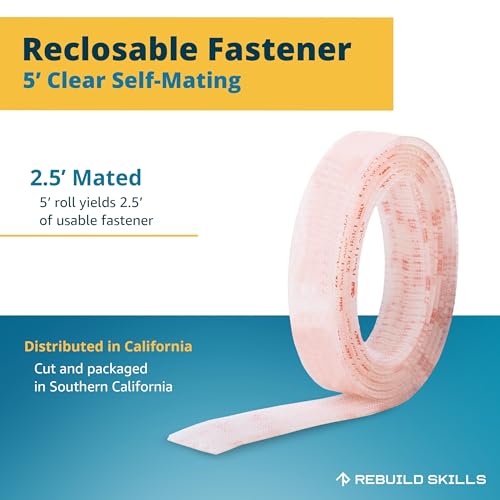 Industrial Strength 1" x 5ft Clear Scotch Self Mating Reclosable Fasteners, Stick-On Adhesive, No Tools Needed, Home Decor, Classroom, Office, Cars, Indoor-Outdoor Waterproof Compatible with SJ356