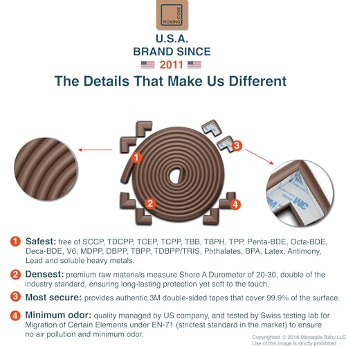 Roving Cove HeftyFit Edge Corner Protector Baby Proofing (Large 18ft Edge 8 Corners), Heavy-Duty, Soft NBR Rubber Foam, Furniture Fireplace Safety Bumper Guard, 3M Adhesive, Coffee Brown