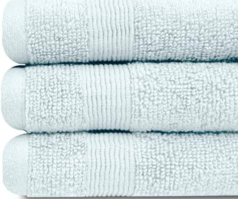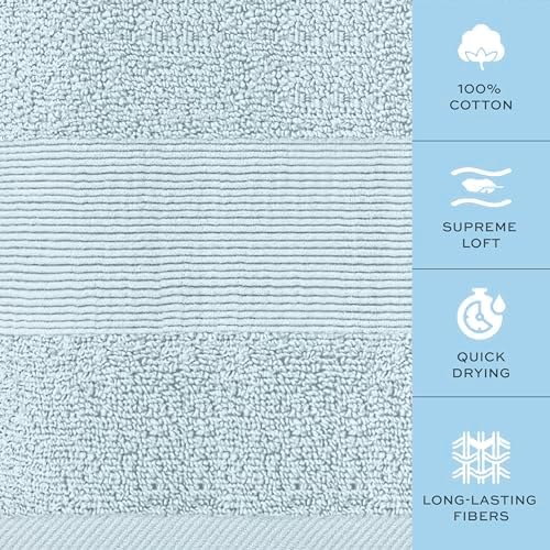 White Classic Resort Collection Soft Washcloth Face & Body Towel Set 12x12 Luxury Hotel Plush & Absorbent Cotton Wash Clothes [12 Pack, Light Blue]