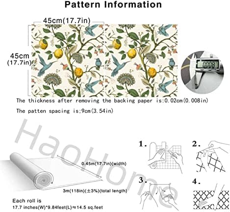 Meihodan Blue Bird Self Adhesive Wallpaper Fresh Lemon Tree Peel and Stick Wallpaper Removable Waterproof Prepasted Contact Paper Wall Mural 17.7in x 9.8ft