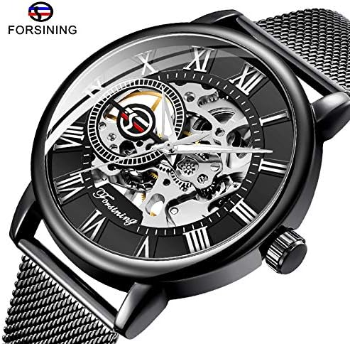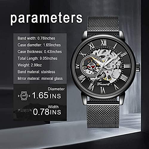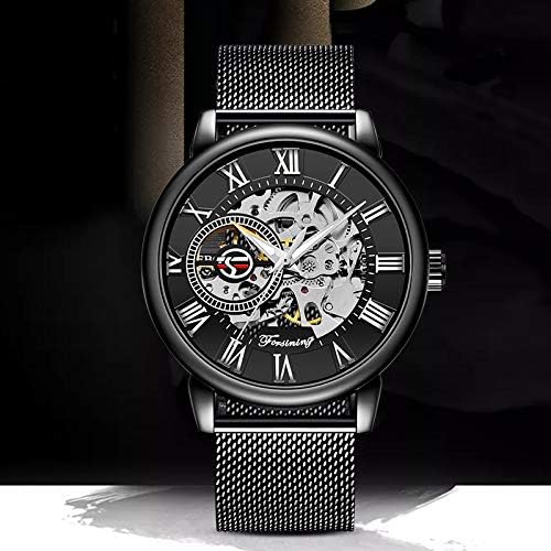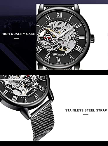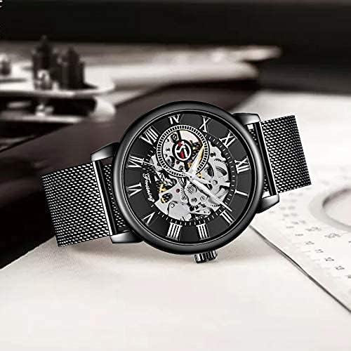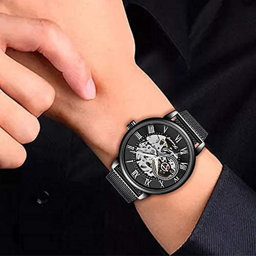 Dentily Men's Skeleton Watch Classic Roman Numeral Steampunk Mechanical Watch Hand-Wind Mens Watches (Blue)