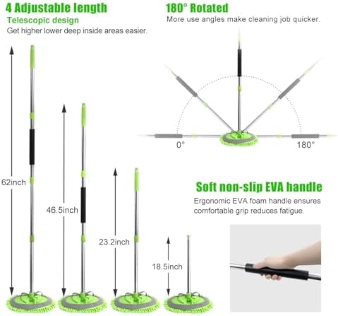 62'' Car Wash Brush with Long Handle Car Wash Mop Mitt Chenille Car Cleaning Kits Windshield Window Squeegee Car Duster Microfiber Towel Gloves for Cars RV SUV Truck 11PCS