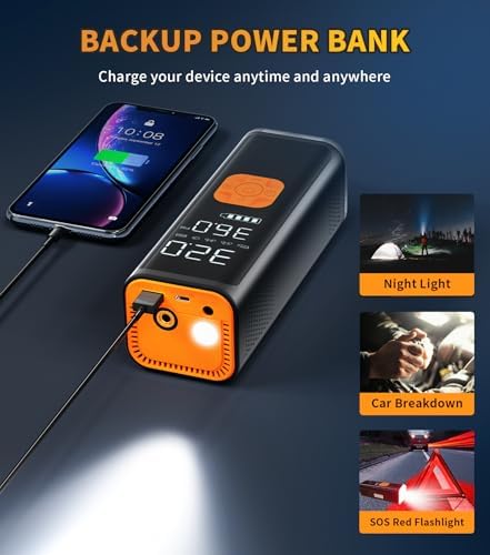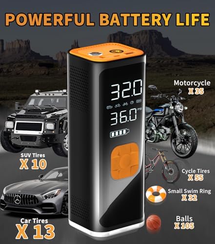 VIL Tire Inflator Portable Air Compressor, 12V DC Air Pump for Car Tires, 150PSI Portable Air Compressor with Pressure Gauge\/LED Light, 20000MAH Portable Tire Inflator for Car, SUV,Pickup Truck,Moto