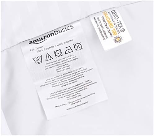 Amazon Basics Brushed Microfiber 3 Piece Duvet Cover Set, Full\/Queen, Bright White, Striped
