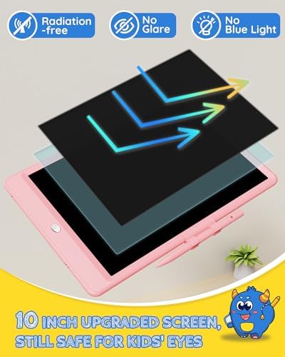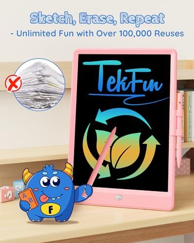 TEKFUN LCD Writing Tablet Doodle Board, 10inch Colorful Drawing Pad for Kids, Mess Free Coloring for Toddlers, Toys Gifts for 3 4 5 6 7 8 Year Old Girls Boys (Pink)