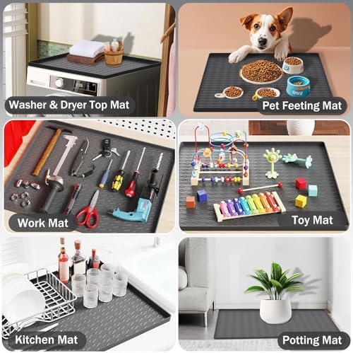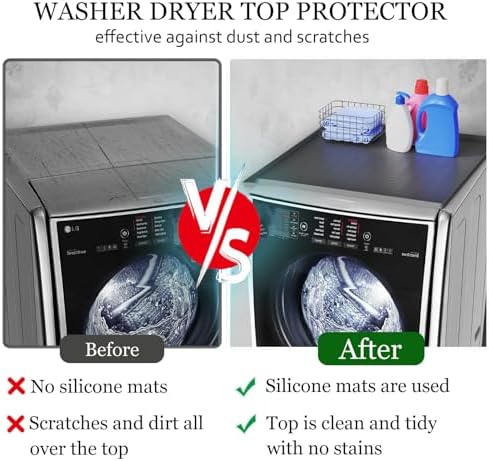 LKYLIVE Washer and Dryer Top Protector Mat, 2 PCS, 25.6\u201C x 23.6" Silicone dust pad, Non-slip,Heat-Resistant, Leak-Proof Top Protector for Laundry Room Essentials,(Gray,2 PCS)