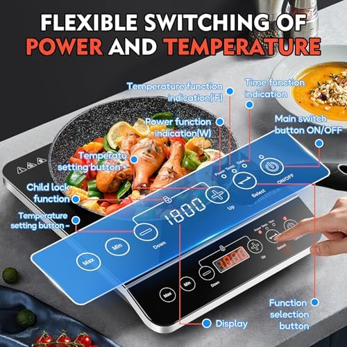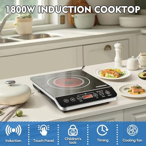 CUSIMAX Induction Cooktop,1800W Portable Induction Burner with Sensor Touch,Kids Safety Lock,10 Temperature and 9 Power Setting induction hot plate with Timer