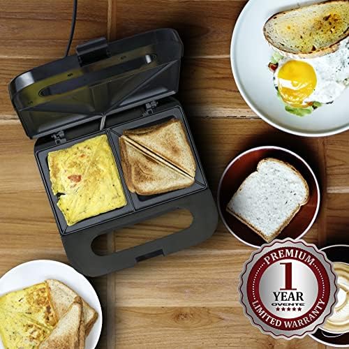 OVENTE Electric Sandwich Maker with Non-Stick Plates, Indicator Lights, Cool Touch Handle, Easy to Clean and Store, Perfect for Cooking Breakfast, Grilled Cheese, Tuna Melts and Snacks, Black GPS401B