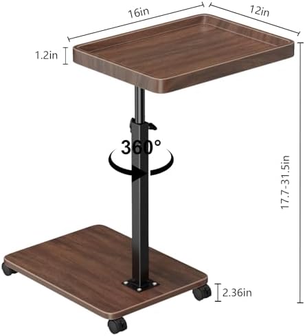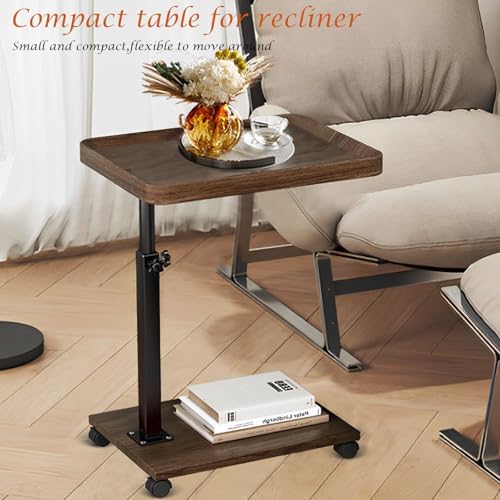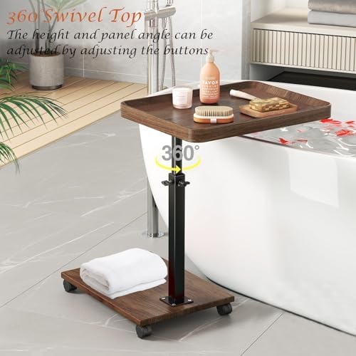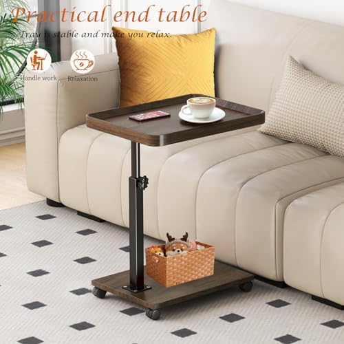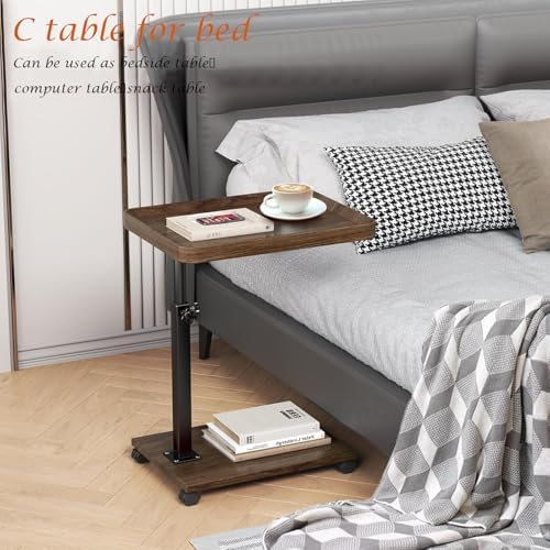 C Table End Table Adjustable Height, 360°Swivel TV Tray Table for Small Spaces, Couch Tables That Slide Under, C Shaped Side Tables with Wheels for Living Room and Bedroom, Bed