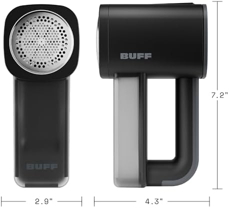 BUFF Fabric Shaver + Lint Remover, Sweater Defuzzer with 3 Motor Speeds, Remove Pills from Blankets, Couch, Clothing, Furniture, Stainless Steel Blade, USB-C Rechargeable \u2013 Black