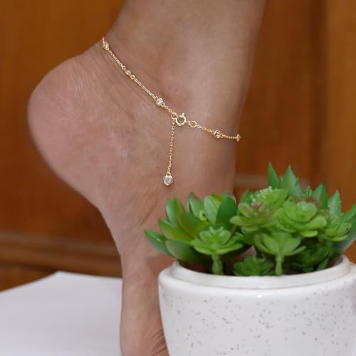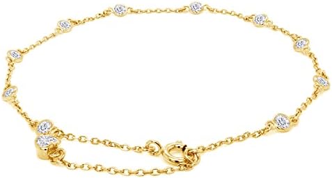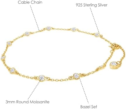 3MM Round Lab Created Moissanite Bezel Set Single Piece Station Anklet Bracelet For Women In 14K Gold Plated Sterling Silver Jewelry (1 Cttw), Gift For Her