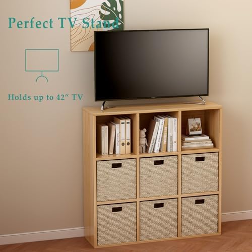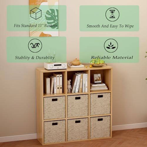 OSCHF 9-Cube Storage Shelf Bookcase - Wooden 3-Tier Floor Standing Open Bookshelf for Home and Office, Display Cabinet, Oak