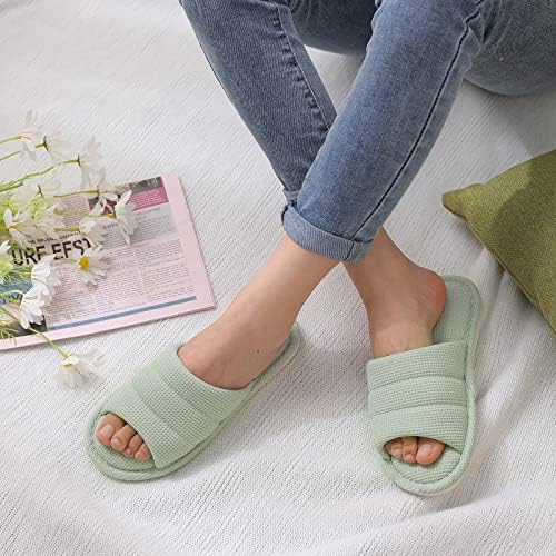 Shevalues summer home slippers for women and men, breathable waffle style indoor slippers, one foot on, open toed home shoes